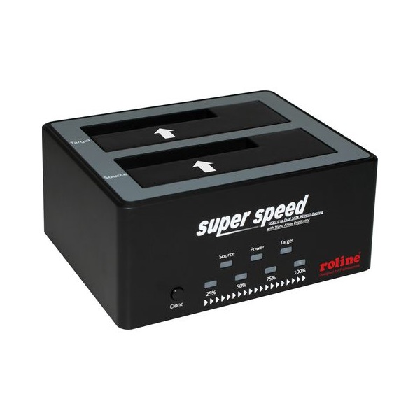 ROLINE Dokkoló állomás USB 3.2 Gen 1 USB-C – HDD/SSD 2,5″/3,5″, HDD klón funkcióval, fekete